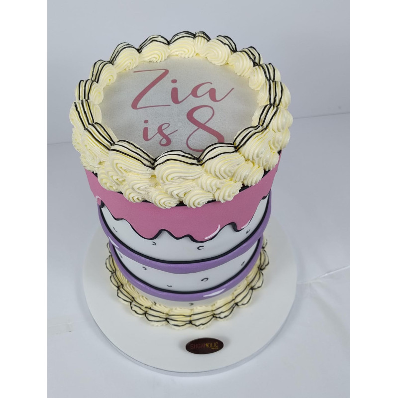 Featuring a vibrant comic-style design, this cake is perfect for birthdays, parties, or themed events where fun and creativity take center stage.