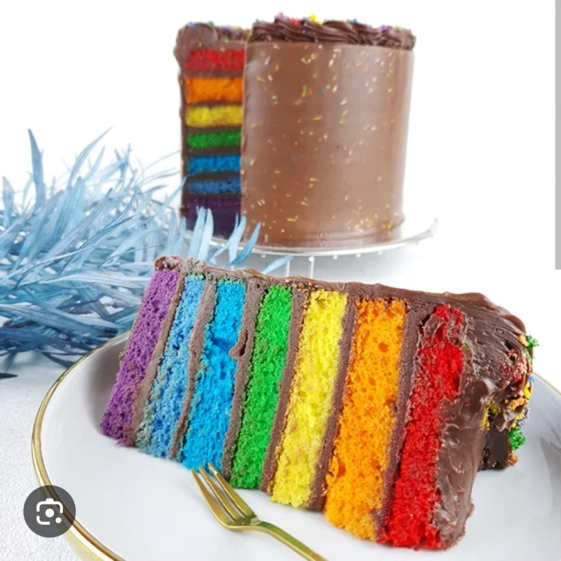 Indulge in the vibrant colors and delectable flavors of our Rainbow Cake! Our moist, layered cake is made with high-quality ingredients and topped with a smooth Chocolate Ganache. Perfect for any celebration or just as a sweet treat, order your Rainbow Cake from Sugaholic today.