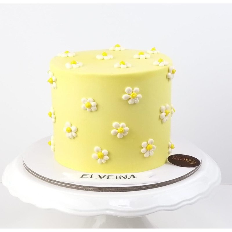 Flowered Minimalist Yellow Buttercream Cake